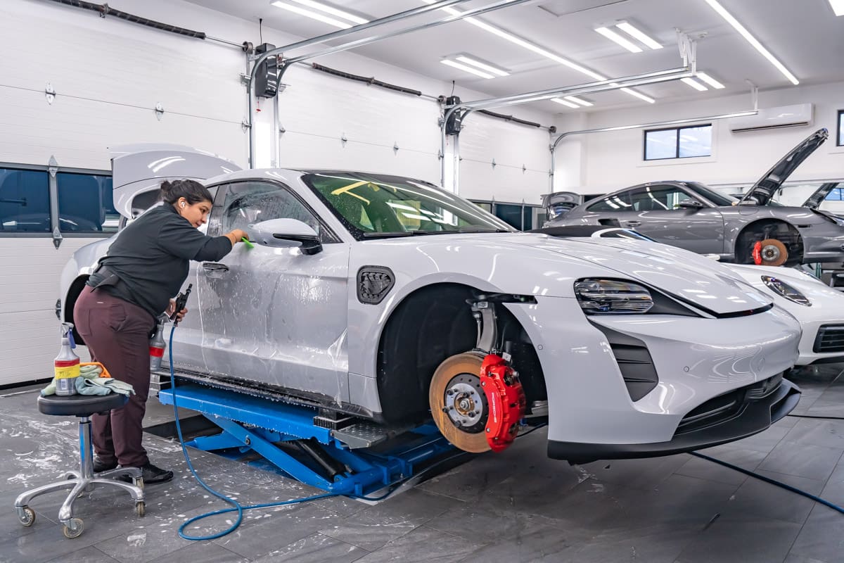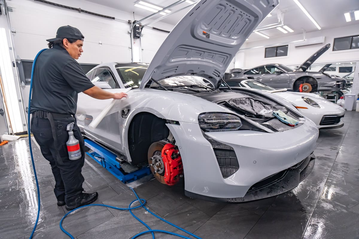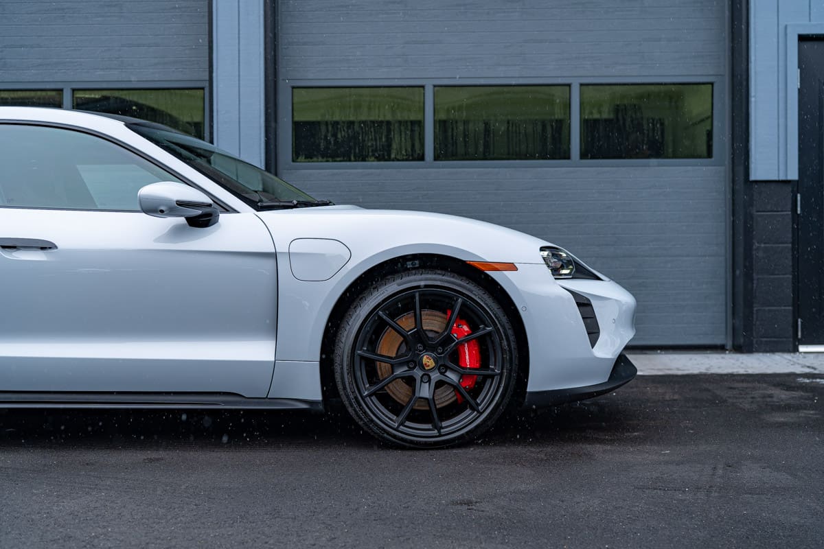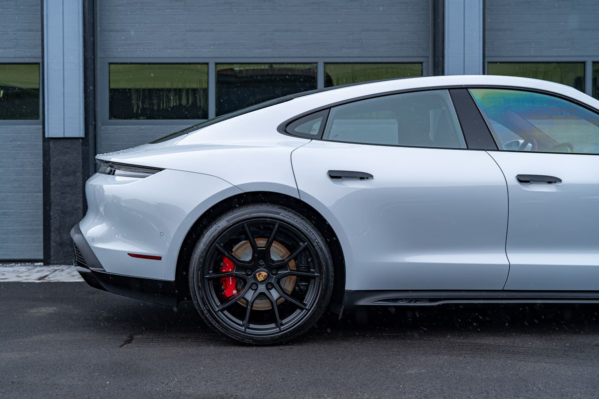 VEHICLE SPECIFICATION 2024 Taycan GTS Ice Silver Metallic SERVICES RECEIVED Enclosed Transport Pickup & Delivery New Car Prep & Paint Correction Detail Xpel Ultimate Plus Paint Protection Film (PPF) Full Body Coverage with Wrapped Edges Xpel Fusion Plus Ceramic Coating WHEEL & BRAKE CALIPER CERAMIC COATING